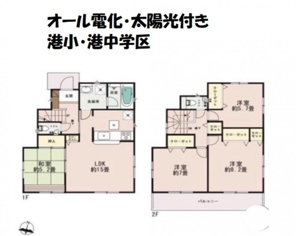 - オール電化、エコキュート、駐車場2台分、電気、太陽光ソーラー