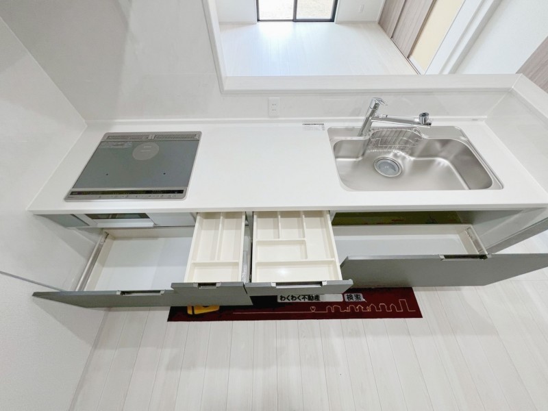 - オール電化、トイレ2箇所、システムキッチン、カウンターキッチン、食器洗浄乾燥機、IHクッキングヒータ、洗浄便座、浴室乾燥機、シャンプードレッサー、追い焚き、複層ガラス、モニタ付インターフォン、駐車場3台分、太陽光発電システム