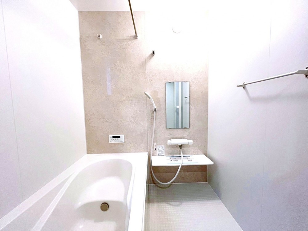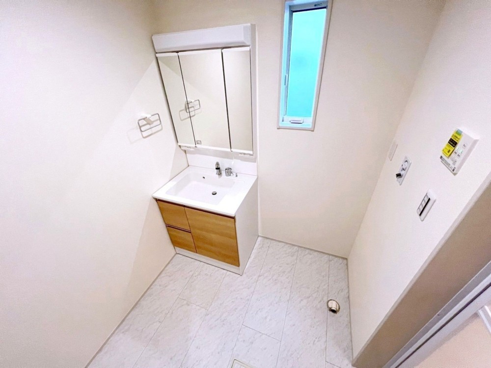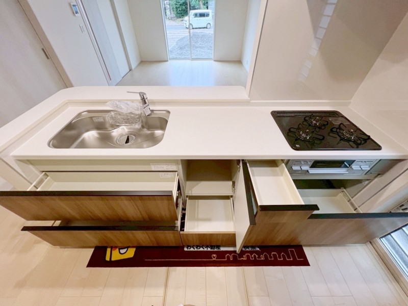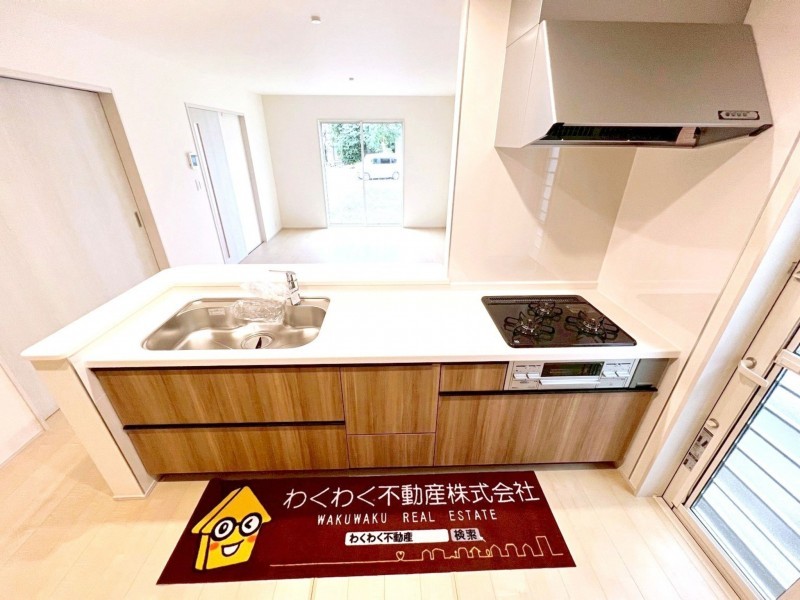 - 電気、側溝、南向き、南面バルコニー、分譲地、50坪以上、接道6m以上、4LDK以上、トイレ2箇所、システムキッチン、カウンターキッチン、洗浄便座、浴室乾燥機、シャンプードレッサー、追い焚き、複層ガラス、ルーフバルコニー、モニタ付インターフォン、床下収納、駐車場2台分、買物便利