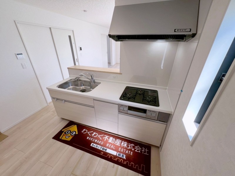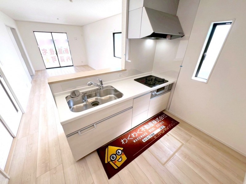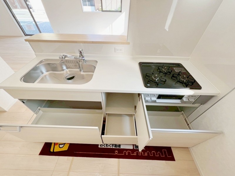 - 電気、50坪以上、トイレ2箇所、システムキッチン、カウンターキッチン、洗浄便座、浴室乾燥機、シャンプードレッサー、追い焚き、複層ガラス、床下収納、駐車場4台以上、通勤便利、買物便利、小学校10分以内、防犯カメラ